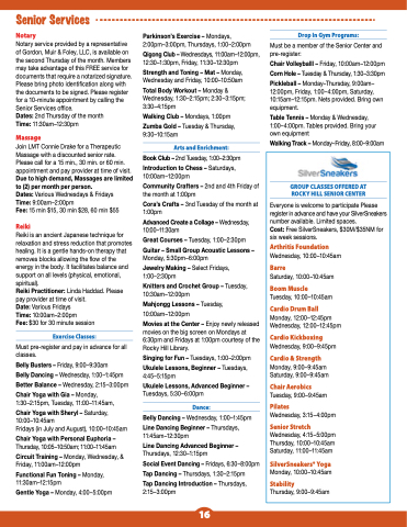 GROUP CLASSES OFFERED AT ROCKY HILL SENIOR CENTER