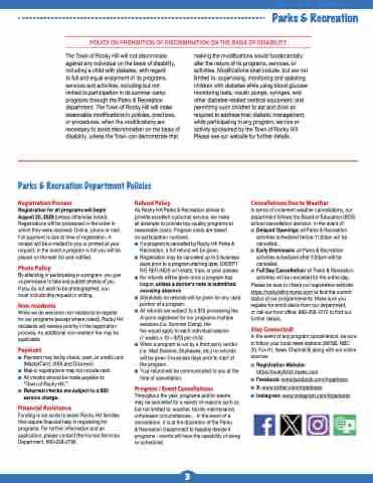 As Rocky Hill Parks & Recreation strives to provide excellent customer service, we make all attempts to provide top-quality programs at reasonable costs. Program costs are based