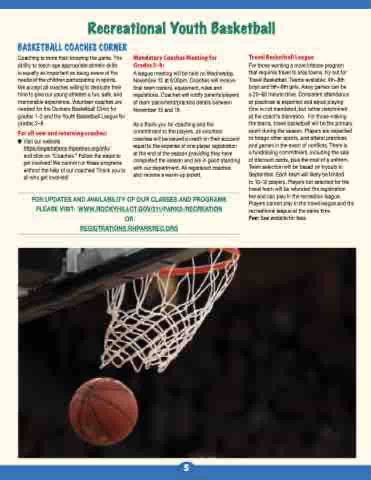For those wanting a more intense program that requires travel to area towns, try out for Travel Basketball. Teams available: 4th–8th boys and 5th–8th girls. Away games can be